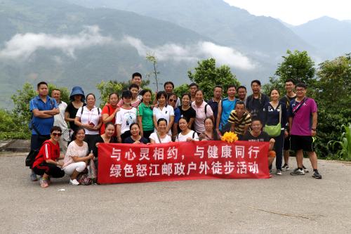 徒步活動于午間圓滿結(jié)束,詫異的是個個比出發(fā)前還精神抖擻、人人都顯意猶未盡。不由感嘆怒江綠水青山美不勝收,讓人忘卻了疲倦,更堅定了郵政職工踐行綠水青山就是金山銀山的理念,大家都表示要象愛護生命一樣愛護生態(tài)環(huán)境,爭做綠色運營踐行者,綠色生活推動者,綠色生態(tài)守護者,綠色品牌塑造者?。ㄔ颇相]政工會)
