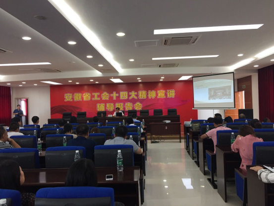 9月11日下午,在滁州市政務會議中心二樓10號會議室開展省工會十四大精神宣講輔導報告會。滁州市郵政工會積極派出基層員工代表和工會干部15人參加報告會。參加報告會后,基層員工代表紛紛表示在今后的工作中,將繼續(xù)發(fā)揮主人翁、排頭兵、先鋒隊、主力軍作用,深入學習貫徹習近平總書記關于工會工作的重要指示精神,不忘初心,牢記使命,爭做新時代的奮斗者。