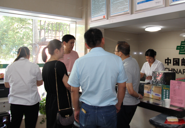 鐘勇一行視察了長(zhǎng)平郵政所職工小家和營(yíng)業(yè)場(chǎng)所,對(duì)職工宿舍、食堂的情況都非常滿(mǎn)意。在營(yíng)業(yè)大廳,鐘勇跟營(yíng)業(yè)員了解了長(zhǎng)平郵政所的包快業(yè)務(wù)發(fā)展情況。