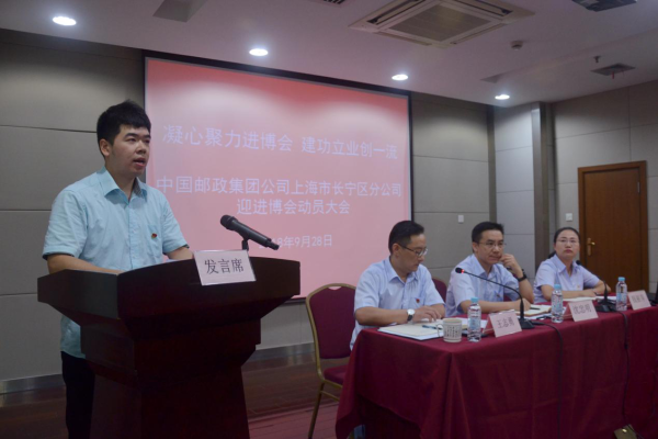 2018年9月28日,長寧區(qū)分公司召開迎進(jìn)博會動員會。舉辦中國國際進(jìn)口博覽會是以習(xí)近平同志為核心的黨中央著眼推進(jìn)新一輪高水平對外開放作出的重大決策,也是展示上海風(fēng)采的良好契機(jī)。長寧郵政作為國企,作為進(jìn)博會場館臨近主區(qū)域的窗口服務(wù)企業(yè),更是有責(zé)任、有義務(wù),舉全司之力、全力以赴做好各項(xiàng)服務(wù)保障工作。