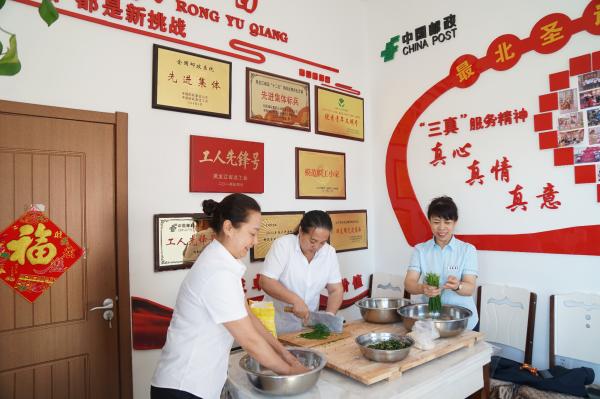 學(xué)習交流活動期間,4位勞模先進代表與北極村郵局8位員工同吃同住、跟班作業(yè)、互相溝通。她們每天從早上7:30跟班到晚上10:30多,迅速融入到了北極村郵局這個集體中。她們用眼睛看到了北極村郵局員工每天工作13個多小時。游客多時,大家一同為來自四面八方的游客提供耐心、細致和周到的服務(wù),閑暇之余交流工作經(jīng)驗,暢談人生、理想,憧憬郵政的美好明天。她們用耳朵聽到了用戶們由衷地贊譽郵政員工的優(yōu)質(zhì)服務(wù),用心感悟到了“創(chuàng)新、協(xié)同、誠信、擔當”的郵政企業(yè)精神在北極村郵局體現(xiàn)的淋漓盡致。午間和傍晚,當北極村郵局員工因為忙碌無暇做飯時,她們在職工小家為前臺服務(wù)的姐妹們包餃子、炒菜、煎韭菜盒子……香噴噴、可口的飯菜讓員工們吃在嘴里,暖在心上。談到這次北極村郵局學(xué)習交流活動,支局長于霞滿懷感激之情:“通過這次學(xué)習交流活動,我也在4姐妹身上看到了很多閃光點,我們之間互相交流、取長補短,共同進步,這更加堅定了帶好這支隊伍,把北極村郵局打造成文化名片、精神地標的信心和決心。”同時,4位勞模先進代表去看望了全國勞動模范尹靜,和她一起溝通交流了工作經(jīng)驗。