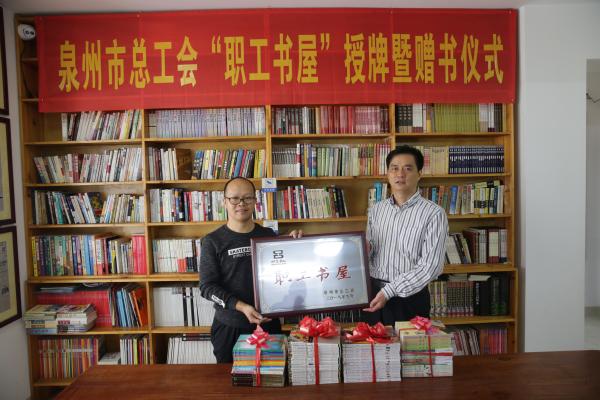 10月19日,泉州市總工會(huì)黨組成員、副主席陳坤生,一行來(lái)到泉州市分公司,為市級(jí)“職工書(shū)屋”示范點(diǎn)Lu公益圖書(shū)室授牌贈(zèng)送圖書(shū)。市郵政工會(huì)主席黃強(qiáng)陪同。