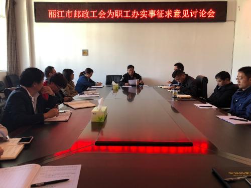 9月中旬,云南郵政工會(huì)下發(fā)了關(guān)于征集2019年為職工辦實(shí)事相關(guān)內(nèi)容的工作通知,麗江郵政工會(huì)及時(shí)作了安排,在基層一線職工中廣泛征求意見(jiàn)。召開(kāi)討論會(huì),相關(guān)部門(mén)、工會(huì)委員、部分職工代表參加了會(huì)議,就征集的內(nèi)容進(jìn)行討論。