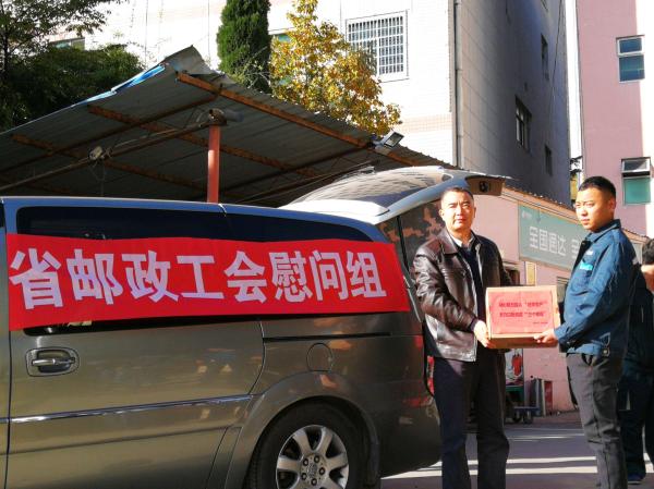 11月6日—11月12日,省分公司資深經(jīng)理、省郵政工會副主席陳智率省郵政工會同志赴貴陽、畢節(jié)、遵義市分公司、寄遞事業(yè)部慰問基層一線員工,看望慰問戰(zhàn)斗在旺季生產(chǎn)經(jīng)營一線的支局所、投遞部的員工,給職工們送上了米、油、罐頭等慰問品,送上省分公司黨組、省郵政工會的關(guān)心和問候,為基層一線“戰(zhàn)旺季”加油鼓勁。每到一個支局所,陳副主席都會參觀職工小家,與一線員工交談,了解支局業(yè)務(wù)發(fā)展情況、周邊市場競爭情況、員工收入情況,感謝大家對旺季生產(chǎn)付出的努力,并鼓勵大家繼續(xù)奮勇爭先,打好旺季攻堅戰(zhàn),努力實現(xiàn)“三個確?!?。在職工小家,陳副主席指出,我們的職工小家就是要為基層員工打造優(yōu)質(zhì)、溫馨的工作環(huán)境和生活環(huán)境,為基層員工解決吃、住等方面的后顧之憂,工會要在旺季生產(chǎn)經(jīng)營中發(fā)揮娘家人作用,關(guān)心關(guān)愛基層員工,加強職工小家建設(shè),增強員工歸屬感,為旺季生產(chǎn)經(jīng)營貢獻力量。