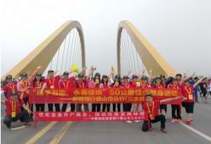 郵儲銀行佛山市分行為了創(chuàng)新企業(yè)員工文體活動形式,不斷把全民健身活動引向深入,讓廣大員工既享受體育運動的樂趣,感受體育運動的魅力,營造一種文明健康的生活方式,佛山市分行組織140多名員工參加了市政府組織的50公里徒步健身活動。我行員工個個志氣高漲、精神飽滿、闊步向前,大家的臉上都洋溢著健康的笑容,沿著徒步路線前行,統(tǒng)一穿印有我行Logo的服裝和舉標(biāo)有我行標(biāo)志的橫幅,向群眾宣傳我行的品牌形象。50公里徒步活動,能走完全程那絕對是毅力和體力的考驗,雖然很多同志并沒有走完全程,但大家一直堅持著,用自己最大的正能量,展現(xiàn)佛山郵儲人的精神和毅力。最終走完50公里的員工有16人,他們的毅力和堅持值得我們學(xué)習(xí)。