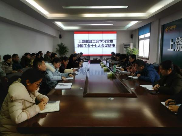 為深入學(xué)習(xí)宣傳貫徹習(xí)近平總書記重要講話精神和中國(guó)工會(huì)十七大精神,進(jìn)一步調(diào)動(dòng)和激發(fā)饒郵廣大職工學(xué)習(xí)貫徹中國(guó)工會(huì)十七大精神熱情,12月13日上午,上饒市郵政工會(huì)組織召開學(xué)習(xí)宣傳貫徹中國(guó)工會(huì)十七大精神專題會(huì),市郵政工會(huì)主席李軍、副主席秦菲、市分公司部門工會(huì)主席、專兼職工會(huì)干部及部分職工代表共40余人參加了專題學(xué)習(xí)。