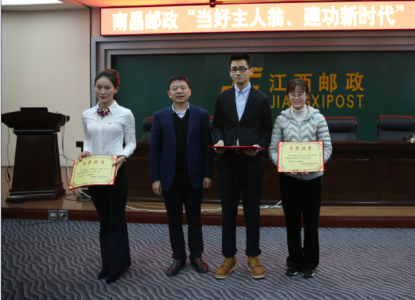南昌市分公司黨委書記、總經(jīng)理呂茂華,市分公司調(diào)研員、副總經(jīng)理金曉強,市分公司副總經(jīng)理、工會主席雷武高分別為獲獎選手頒獎。(江西省郵政工會)