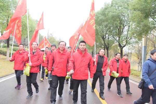 12月26日,由黃岡市政府主辦的遺愛湖萬人迎春健步行活動(dòng)在黃梅戲大劇院前廣場啟動(dòng)。黃梅戲大劇院門口人頭攢動(dòng),各色彩旗迎風(fēng)招展,遺愛湖萬人迎春健步行活動(dòng)蓄勢待發(fā)。黃岡郵政機(jī)關(guān)100余名員工參與了健步行活動(dòng)。身著統(tǒng)一的紅色沖鋒衣,排著整齊的列隊(duì),伴隨著廣播體操的旋律,8點(diǎn)半整,隨著一聲號令,100余名隊(duì)員踏著有力的節(jié)奏,迎著清晨陽光,昂首闊步,大步向前走。