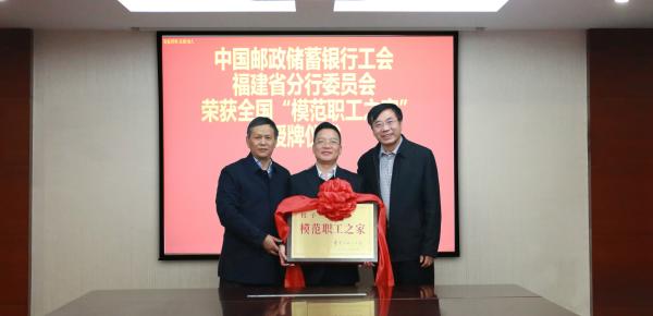 “全國(guó)模范職工之家”榮譽(yù)稱號(hào)是中華全國(guó)總工會(huì)表彰建家工作的最高榮譽(yù),也是國(guó)家對(duì)基層工會(huì)建家工作的最高褒獎(jiǎng)。郵儲(chǔ)銀行福建省分行是2018年度中國(guó)國(guó)防郵電工會(huì)推薦的唯一一家郵政行業(yè)單位,也是郵儲(chǔ)銀行系統(tǒng)內(nèi)第3個(gè)獲此殊榮的單位。省郵政工會(huì)王全江主席主持了授牌儀式。期間,黃敬平副主席用“五個(gè)前頭”充分肯定了郵儲(chǔ)銀行福建省分行在工會(huì)工作中取得的優(yōu)異成績(jī)。一是團(tuán)結(jié)帶領(lǐng)群眾聽(tīng)黨話、跟黨走走在了前頭;二是“高質(zhì)量發(fā)展”走在了前頭;三是在履行“維權(quán)、服務(wù)”的職能上走在了前頭;四是推進(jìn)群團(tuán)改革工作走在了前頭;五是工作創(chuàng)新亮點(diǎn)走在了前頭。
