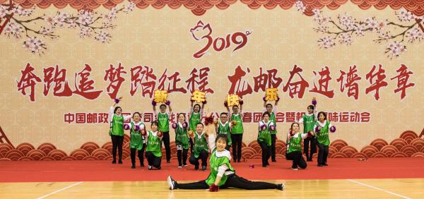 隨著一曲《舞動(dòng)的青春》,一群朝氣蓬勃的郵政女員工用他們自信而富有活力的舞蹈拉開了趣味運(yùn)動(dòng)會(huì)的序幕。趣味運(yùn)動(dòng)會(huì)首先進(jìn)行的是團(tuán)隊(duì)展示,6支團(tuán)隊(duì)或舞蹈、或祝福、或手持對聯(lián)、或揮舞隊(duì)旗,以新穎的形式展現(xiàn)著自我,充滿著智慧和力量。6支團(tuán)隊(duì)的精彩展示已經(jīng)悄悄地為趣味運(yùn)動(dòng)會(huì)醞釀著“一戰(zhàn)到底”的比拼氛圍。聽,擂鼓聲中,趣味運(yùn)動(dòng)會(huì)賽事正式打響。
