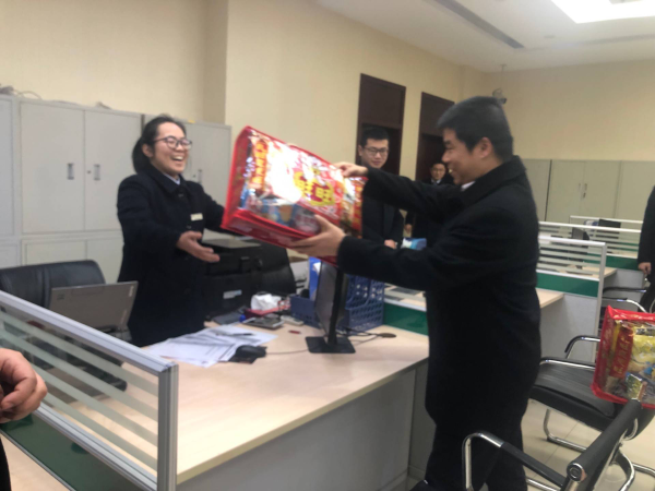 高峽副行長(zhǎng)強(qiáng)調(diào),小企業(yè)信貸既是我行業(yè)務(wù)發(fā)展的優(yōu)勢(shì)也是資源,一定運(yùn)用好這一資源使企業(yè)效益最大化。他對(duì)東城支行“掛圖作戰(zhàn)”這一作法表示肯定。最后高峽副行長(zhǎng)為員工送上了慰問品,帶去省分行對(duì)基層員工的關(guān)愛和問候。