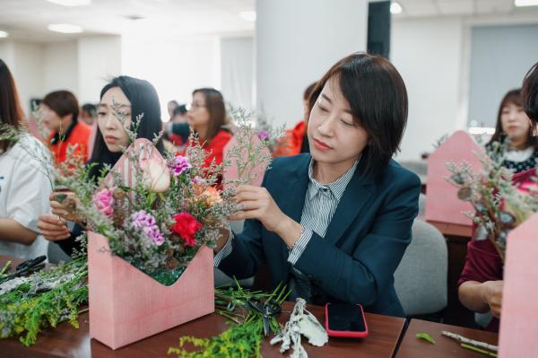 讓繁花點(diǎn)亮你的生活。鮮花永遠(yuǎn)是女神們的最愛!看著大家細(xì)心聆聽了小馬老師的講解,把自己手里的花朵變成一份份精致的花籃,臉上露出燦爛的笑容,讓心情更美麗。