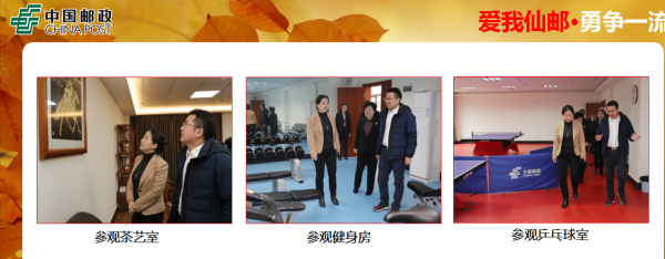 吳靜一行還參觀了由市分公司與市總工會聯(lián)合打造的戶外職工“愛心驛站”和市分公司建成的“職工之家”。對仙桃郵政關愛戶外職工、奉獻愛心的舉措稱贊不已,對仙桃郵政履行國企擔當、熱心公益事業(yè)予以肯定。在“職工之家”的職工活動中心,吳靜對企業(yè)拿出1000多平米建設茶藝室、書畫室、乒乓球室、器材房、瑜伽房、兒童樂園大加贊賞,認為仙桃郵政關心關愛職工業(yè)余文化生活有陣地、有亮點,做得細、做得實,值得其他企業(yè)學習和借鑒。