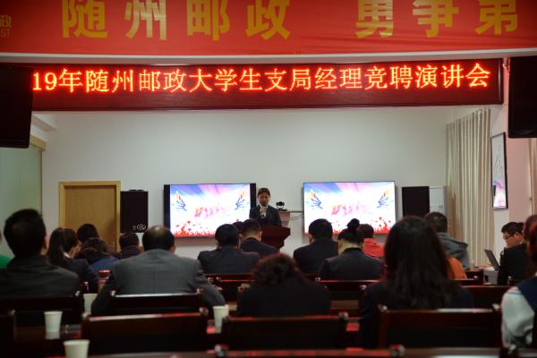 3月29日上午,“2019年隨州郵政大學(xué)生支局經(jīng)理競聘演講會”在市分公司3樓舉行。本次活動是落實市分公司工作會、職代會會議精神舉措之一,旨在關(guān)愛人才、助力大學(xué)生認(rèn)真對待自己的職工生涯規(guī)劃,建設(shè)一支適應(yīng)新時代發(fā)展要求,充滿活力的高素質(zhì)專業(yè)化年輕干部隊伍。市分公司總經(jīng)理陽海龍,副總經(jīng)理劉斌、李永燕及相關(guān)部室負(fù)責(zé)人擔(dān)任評委。