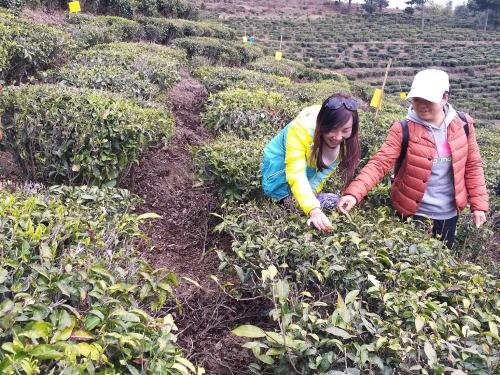 三月的查姆湖鮮花爭奇斗艷,櫻花、玉蘭、桃花、梨花競相開放,春意滿園。暢游于花海間,“女神”們精神抖擻與百花爭艷,到處是她們開心的笑臉?;▍查g、綠水旁,這里三個,那邊一群,互相邀約紛紛留下美麗的倩影。踏青賞花中,談笑著,說笑間,往日里工作中的壓力與精神上的緊張疲勞早已煙消云散。走進(jìn)白竹山,山澗里悄然綻放的馬櫻花把春色裝扮的格外俏麗。紅的、粉的、白的,在春風(fēng)的邀給下,如約而至,在藍(lán)天的襯托下,正忙于一年一季的“時裝秀”。云霧籠罩下的茶園里,一排排低矮翠綠,剛剛冒出嫩芽的茶樹,讓人垂涎欲滴,滿口生津。“女神”們穿梭于翠綠間,讓人不禁感嘆大自然的神奇,竟能作出如此天然的美麗畫卷。采茶體驗(yàn)中,青翠欲滴的茶尖嫩芽,讓大家愛不釋手,欲罷不能。愛美的女神,此時也沒忘記留影,紛紛拿起手機(jī)拍過不停。