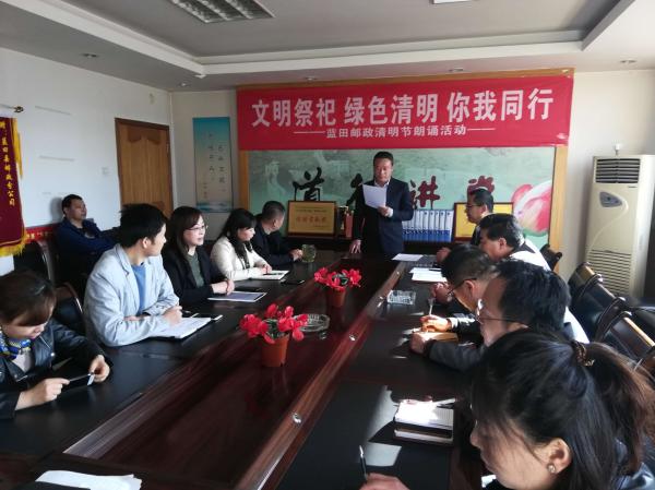 春風(fēng)送暖,又逢清明,再過(guò)兩天,2019年清明節(jié)就要到來(lái),在這緬懷先烈、祭奠逝者、追思故人的傳統(tǒng)節(jié)日到來(lái)之際,為形成“綠色清明、文明祭祀”的良好氛圍,以健康、文明、低碳、有序的形式進(jìn)行,提升城鄉(xiāng)文明形象,藍(lán)田郵政分公司于4月3日組織職工開(kāi)展“文明祭祀,綠色清明”詩(shī)歌朗誦活動(dòng)。