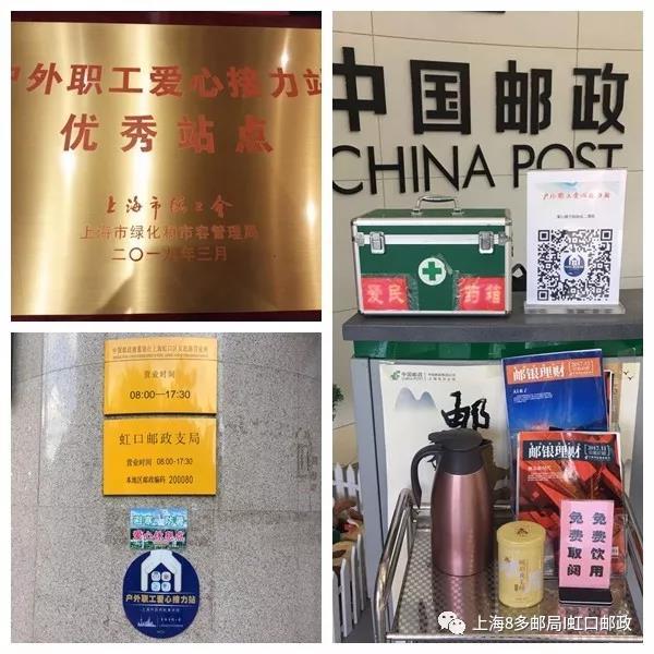 2018年上海市政府實(shí)事項(xiàng)目——“戶外職工愛心接力站”站點(diǎn)順利揭牌,并在大眾點(diǎn)評網(wǎng)、12351職工服務(wù)平臺等網(wǎng)絡(luò)媒體上正式上線。為把這項(xiàng)實(shí)事做細(xì)做好,進(jìn)一步提高上海郵政的社會影響力和美譽(yù)度,虹口郵政支局在分公司的帶領(lǐng)下攜手虹口區(qū)文明辦,在支局設(shè)立了為環(huán)衛(wèi)工人、快遞員、協(xié)管員、送餐員、出租車司機(jī)、物流駕駛員、交警輔警等戶外職工為主要服務(wù)對象的戶外職工愛心接力站,嚴(yán)格遵照“6+x”服務(wù)內(nèi)容執(zhí)行向戶外職工開放并提供飲水機(jī)、空調(diào)、冰箱、微波爐、充電排插、休息桌椅和“愛心服務(wù)箱”并配備了創(chuàng)可貼、清涼油、人丹、棉簽等常用藥物,以備不時之需、并結(jié)合支局已有的服務(wù),提供便民服務(wù)箱、交通卡充值等個性化服務(wù)。支局首先對外懸掛戶外職工愛心接力站標(biāo)識,站內(nèi)懸掛戶外職工愛心接力站服務(wù)公約,公示站長和現(xiàn)場負(fù)責(zé)人姓名與聯(lián)系電話。