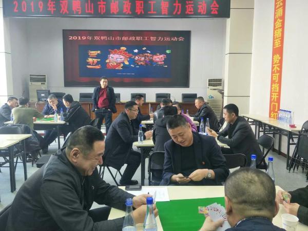 雙鴨山市郵政工會于4月4日上午,舉辦了2019年全市郵政職工三打一比賽活動。此次賽事是為了不斷豐富全市郵政職工的業(yè)余文化生活,增進(jìn)職工間的溝通與交流而舉辦的,同時(shí)也將選拔優(yōu)秀選手參加省郵政工會舉辦的2019年全省郵政職工智力運(yùn)動會。三打一比賽共有20名選手參加,分為五個(gè)小組。上午8時(shí)30分,比賽拉開帷幕,市分公司副總經(jīng)理、工會主席時(shí)紅軍親臨現(xiàn)場致開幕詞。大家在歡聲笑語中進(jìn)行了抽簽和分組等程序后立即進(jìn)行了比賽。賽場上雖然緊張但是卻不乏活潑友好氛圍,其中既要有合作又要有爭斗,三個(gè)一伙的也會不時(shí)用眼神進(jìn)行交流和暗示,惹的莊家不得不微笑著提醒“注意牌風(fēng)哈”;先進(jìn)行完比賽的選手們駐足觀戰(zhàn)前四名的爭奪賽,比賽在歡樂的氣氛中共進(jìn)行了近4個(gè)小時(shí)才結(jié)束。