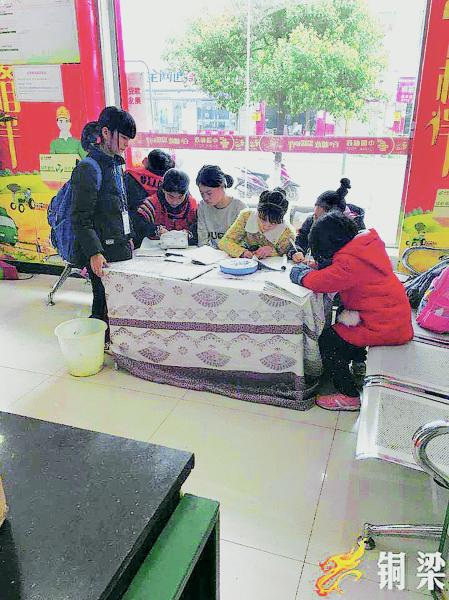 “周一到周四,這里的學(xué)生有20個左右,只有周五部分學(xué)生要乘車回銅梁,部分學(xué)生走路回家,這里學(xué)生就少很多?!眲⑽钠颊f,營業(yè)廳里原本沒有桌子,板凳也是提供給前來辦業(yè)務(wù)的顧客坐的。為何會在這兒設(shè)立一個“四點半”課堂,這源于一年前她的一個發(fā)現(xiàn)。