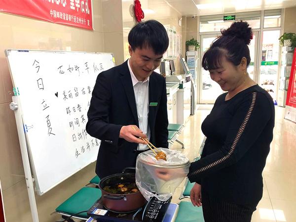 當(dāng)天清晨,該支局員工們親自動(dòng)手,洗雞蛋、放茶葉、煮雞蛋一氣呵成,兩個(gè)小時(shí)后,香氣撲人的茶葉蛋已準(zhǔn)備好。營(yíng)業(yè)網(wǎng)點(diǎn)開門后,員工們將茶葉蛋送到每一位前來(lái)辦理業(yè)務(wù)的客戶手中,并送上立夏日吃雞蛋可以祈禱夏日平安等祝福。收到雞蛋和祝福的客戶們都對(duì)郵政的服務(wù)贊不絕口。
