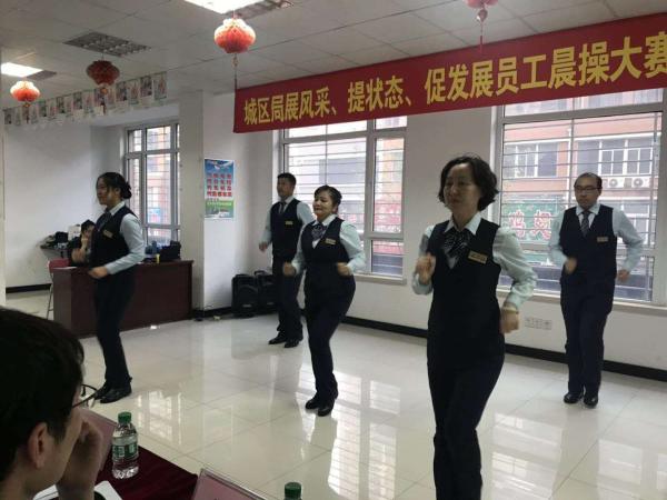 比賽中,每支隊伍都斗志昂揚、團結奮進,每位參賽隊員都動作標準、整齊劃一;在晨操環(huán)節(jié)中快樂舞蹈、廣播體操齊齊上陣,內容豐富、形式多樣,充滿動感與活力的表演贏得陣陣掌聲;風采展示口號響亮有力,蓬勃向上的精神狀態(tài)感染了在場的每位觀眾。此次晨操大賽,各網(wǎng)點、各部門組織員工在不影響正常上班的前提下,利用業(yè)余時間加班加點進行排練,年齡大的員工和年輕員工一道,突破自我,提升服務,凝聚團隊合力,展示團隊風采,樹立最美服務形象為自己代言。
