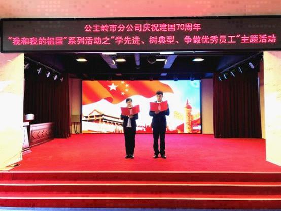 5月20日,公主嶺市分公司舉辦慶祝建國70周年“我和我的祖國”系列活動之“學(xué)先進、樹典型、爭做優(yōu)秀員工”主題活動,分公司全體黨員、部分青年代表參加。