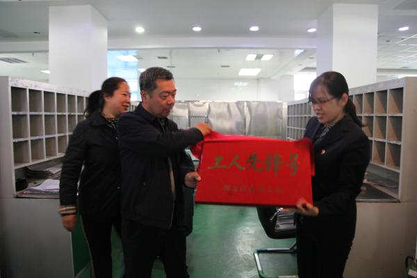五一”國際勞動節(jié),黑龍江省總工會召開慶祝“五一”國際勞動節(jié)暨表彰先進大會,此次獲獎名單中,中國郵政集團公司黑河市分公司寄遞事業(yè)部投遞班獲評2018年度黑龍江省“工人先鋒號”榮譽稱號。8日上午,黑河市分公司在郵件投遞分揀場地內(nèi)舉行了揭牌儀式,市分公司黨委書記、總經(jīng)理劉劍波,工會主席、副總經(jīng)理關(guān)春艷出席揭牌儀式。