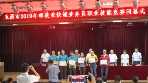 5月18日,由玉溪市郵政管理局、玉溪市總工會(huì)、玉溪市人力資源和社會(huì)保障局組織開展的玉溪市首屆2019年郵政業(yè)快遞業(yè)務(wù)員職業(yè)技能競(jìng)賽在玉溪舉行,玉溪市分公司組隊(duì)參賽。通過筆試和實(shí)際操作比賽的緊張角逐,獲得了團(tuán)體一等獎(jiǎng),個(gè)人一等獎(jiǎng)1名,個(gè)人二等獎(jiǎng)3名,包攬個(gè)人賽排名前4名的優(yōu)異佳績(jī),展示了玉溪郵政人的風(fēng)采。