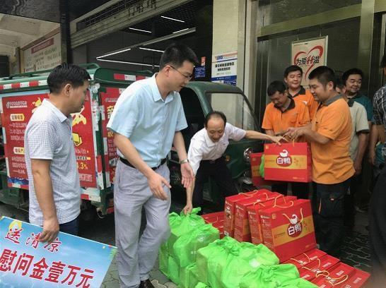 高飛副主席代表市總工會為投遞員們送上了高溫慰問品與慰問金,詳細(xì)了解了一線員工近期的工作情況,詢問了員工高溫期間的作息時間,囑咐他們注意防暑降溫,還與一線員工深入交流溝通,傾聽他們的意見和建議。同時提出郵政企業(yè)要進(jìn)一步改善投遞員生產(chǎn)生活條件,做好安全生產(chǎn)和防暑降溫工作,特別是在高溫天氣下作業(yè),要合理安排戶外作息時間,加強(qiáng)用電安全,給職工創(chuàng)造一個良好的工作環(huán)境,更好地保障投遞員的身體健康。