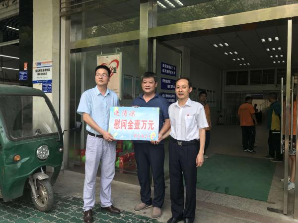 7月26日,黃石市總工會高飛副主席一行5人前往黃石市郵政分公司頤陽苑攬投部,看望慰問堅守崗位的一線投遞員,為他們送上絲絲清涼。黃石市郵政分公司工會主席鄧寶才陪同參與。