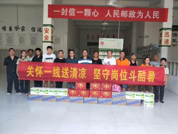 入伏以來,黃岡持續(xù)出現(xiàn)高溫天氣,氣象臺多次發(fā)布高溫預警,給郵政生產(chǎn)經(jīng)營特別是外勤作業(yè)帶來考驗。7月30-8月6日,市分公司組織開展了“夏送清涼”關愛員工活動,市分公司領導胡智宏、易禮軍、李列,帶上防暑降溫慰問品走進基層,看望慰問高溫下奮戰(zhàn)在一線的員工,要求各單位切實做好防暑降溫和后勤保障工作,將關心關愛送到員工的心坎上。