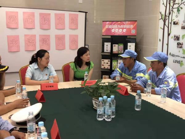 2019年8月13日上午9:30,長寧郵政支局聯(lián)合江蘇街道社區(qū)黨建服務(wù)中心,在長寧郵政支局活動室,共同開展愛心接力站慰問交流會。 希望能借此了解一線戶外工作者的日常,面對面傾聽他們對愛心接力站使用至今的想法以及改善建議。長寧郵政支局支局長曹雯,支部書記黃芳親自出席該活動,為交通協(xié)管員們,環(huán)衛(wèi)工人代表送上夏日慰問禮品,表達(dá)了對他們工作的高度認(rèn)可,感謝他們?yōu)檫@座城市的默默付出。