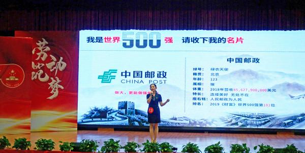 演講比賽緊扣“勞動筑夢”主題,真情講述了用勞動鑄就夢想的鮮活典型,充分展示出新中國成立70年來青海發(fā)生的翻天覆地的變化,彰顯了廣大職工熱愛祖國、奉獻青海、拼搏進取、無私奉獻的精神風貌。經(jīng)過兩天的緊張激烈的角逐,西寧郵區(qū)中心局龐磊榮獲一等獎、陳文文榮獲二等獎,省郵政工會獲優(yōu)秀組織獎。