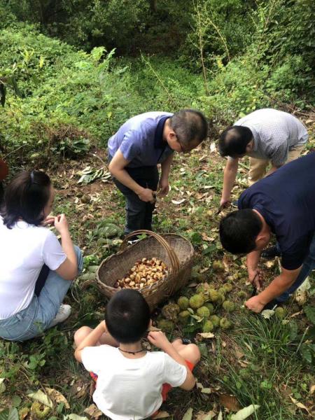 采摘活動地點(diǎn)位于廣水市三潭,初秋的田野里果實(shí)累累,展現(xiàn)著勃勃生機(jī),這次的采摘對象是板栗。一路上,大家歡聲笑語不斷,大家到達(dá)目的后,看見滿樹都是帶刺的板栗,即新鮮有趣又好奇,大家都興奮不已。“原來板栗是長在這個上面的呀,我以前怎么不知道啊”,四周不時傳來驚喜的叫聲和笑聲,那一定是有了“新發(fā)現(xiàn)”,揮汗如雨中共同體驗(yàn)了采摘之樂。