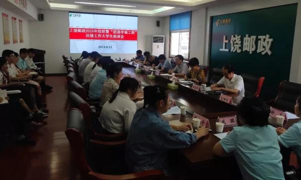 為進(jìn)一步了解新入職大學(xué)生的工作和生活情況,為新入職大學(xué)生答疑解惑、樹(shù)立信心。8月23日下午,上饒市分公司和市郵政工會(huì)聯(lián)合召開(kāi)了2019年校招暨“團(tuán)圓幸福工程”回饒工作大學(xué)生座談會(huì)。市分公司總經(jīng)理、市寄遞事業(yè)部總經(jīng)理呂茂華,市分公司副總經(jīng)理劉穎蕾參會(huì)。