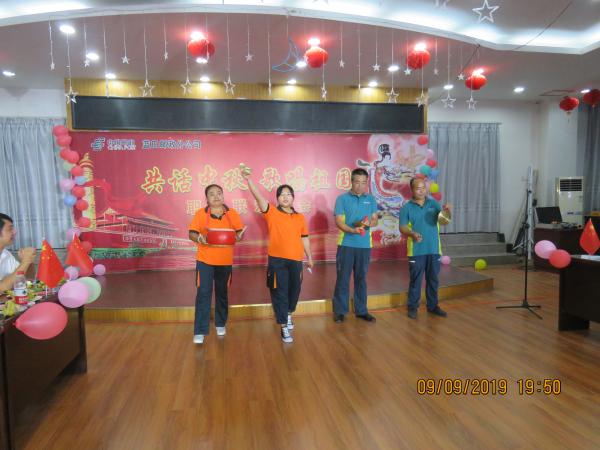 晚會張燈結彩,彩旗飄揚,一輪發(fā)光的明月懸掛在晚會現(xiàn)場的上空,耀眼的星光熠熠閃爍,以嫦娥奔月和天安門城樓組成的背景圖案,主題鮮明,喜慶、暖色、和諧,職工精神抖擻、喜笑顏開,晚會以“月圓”之意,象征藍田郵政這個大家庭團圓之聚和溫暖,通過“祖國頌”詩歌朗誦、“中秋賦”詩歌朗誦、“歌唱祖國”大合唱、“贊郵政”三句半抒情表演以及職工游戲等十多個節(jié)目表演,達到了寓教于樂,豐富職工文化生活的目的,起到“聚人心、興文化、樹形象”的積極作用,弘揚了主旋律,謳歌了真善美。