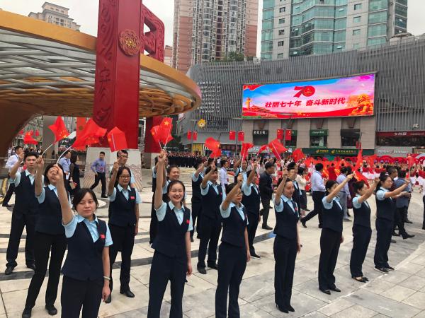 9月19日上午,重慶市九龍坡區(qū)分公司作為唯一一家企業(yè),參與“迎國(guó)慶70周年.展九龍坡新風(fēng)貌”系列活動(dòng)啟動(dòng)儀式,九龍坡區(qū)商圈升級(jí)改造的亮相,活動(dòng)現(xiàn)場(chǎng)揭開(kāi)了九龍坡區(qū)新地標(biāo)建筑“九龍門(mén)”的面紗,隨著“九龍門(mén)”身披的紅綢落下,也拉開(kāi)了九龍坡區(qū)慶祝新中國(guó)成立70周年系列活動(dòng)的序幕?;顒?dòng)中,九龍坡郵政組織30名郵政員工在楊家坪步行街參加祝福新中國(guó)成立70周年“快閃”拍攝活動(dòng),齊聲高唱《我和我的祖國(guó)》。用昂揚(yáng)的精神面貌展示郵政企業(yè)形象,深情祝福偉大祖國(guó)更加繁榮昌盛。
