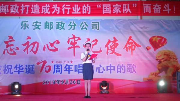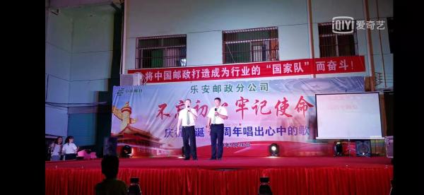 9月26日,為慶祝祖國70華誕,結(jié)合“不忘初心·牢記使命”主題教育活動(dòng),樂安縣郵政工會(huì)與黨建部聯(lián)合舉辦了“慶祝華誕70周年·唱出心中的歌”文藝晚會(huì)。