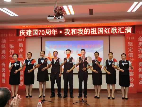 為喜迎建國70周年,振奮員工工作士氣,全力沖刺金融跨賽,9月17日晚,唐山曹妃甸區(qū)分公司組織“慶建國70周年·我和我的祖國”紅歌匯演活動。曹妃甸分公司領導班子及職工近200人歡聚一堂,共同為祖國提前“慶生”。