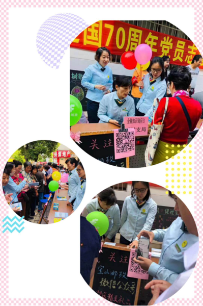 9月26日上午7:00,上海郵政寶山區(qū)分公司顧村支局工會(huì)主席陸愛華帶領(lǐng)網(wǎng)點(diǎn)主任、黨員開展了一次“迎中秋、慶國(guó)慶”的活動(dòng),此次活動(dòng)大約有100多位郵政局的老朋友來(lái)參加,且負(fù)責(zé)這片小區(qū)安全的章警官也來(lái)幫忙維持這次活動(dòng)秩序和安全,此次活動(dòng)主要項(xiàng)目:1、宣傳鑒別假幣、防范電信詐騙知識(shí);工作人員通過(guò)派發(fā)最新版本的反假幣宣傳手冊(cè)、現(xiàn)場(chǎng)傳授一看、二摸、三聽、四測(cè)的假幣識(shí)別技巧和方法、又通過(guò)案例分享以及咨詢問(wèn)答等形式,宣傳有關(guān)愛護(hù)人民幣、殘損人民幣管理等人民幣管理知識(shí)及假幣收繳有關(guān)規(guī)定,普及反假幣金融知識(shí),這種面對(duì)面的互動(dòng)交流,不僅拉近了與公眾的距離,也擴(kuò)大了反假幣宣傳的影響,讓廣大居民詳細(xì)的了解到假幣的嚴(yán)重后果以及對(duì)自身的危害,提高了公眾的反假、防假意識(shí),也為有力打擊犯罪活動(dòng),維護(hù)社會(huì)經(jīng)濟(jì)穩(wěn)定起著一定的作用。2、正逢中秋佳節(jié),我們又準(zhǔn)備了猜燈迷的游戲活動(dòng),凡猜中者都有一份精美的小禮品,現(xiàn)場(chǎng)活動(dòng)內(nèi)容豐富,使得居民們熱情高漲,反響強(qiáng)烈,打造了顧村支局愛民、便民、利民的企業(yè)形象。