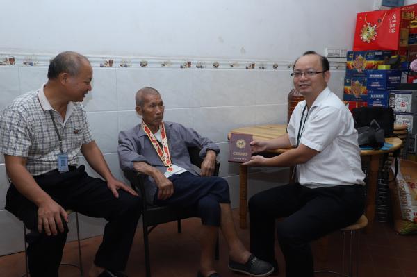 建國70周年際,中國郵政集團公司貴港市分公司黨委委員、黨委組織部主任劉強和工會副主席李初岳代表公司黨委、工會上門走訪慰問中共中央、國務(wù)院、中央軍委頒發(fā)的“慶祝中華人民共和國成立70周年”紀(jì)念章獲得者抗美援朝老兵譚積友,送去黨和企業(yè)、工會的美好祝愿。