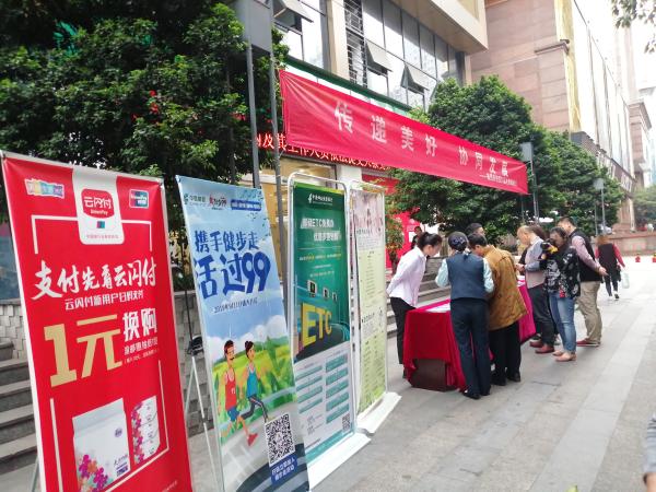 早上8點(diǎn),在南坪西路營業(yè)廳廣場設(shè)立了金融、寄遞業(yè)務(wù)、集郵業(yè)務(wù)等宣傳區(qū)域,郵政營銷人員在積極為客戶宣傳防假幣知識(shí)以及金融安全、寄遞包裹的常識(shí),擺放了珍貴郵票展框吸引了無數(shù)群眾的圍觀,紛紛參與業(yè)務(wù)的咨詢,現(xiàn)場氣氛熱烈。