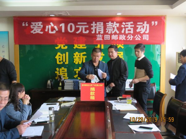 在我們身邊,還有許多貧困母親和貧困兒童以及殘疾人家庭因貧困難以維持正常生活,為了充分發(fā)揚(yáng)中華民族“扶危濟(jì)困”的傳統(tǒng)美德,讓我們每一個職工都伸出溫暖的雙手,奉獻(xiàn)一片真摯的愛心,藍(lán)田郵政分公司于2019年10月29日,開展了愛心10元捐款活動,倡議職工每人捐獻(xiàn)10元,為貧困家庭獻(xiàn)上一份愛心。點(diǎn)滴愛心暖流,一縷冬日陽光,感受真情友愛。捐款采取自愿原則,金額不限。100名職工參與了本次愛心10元捐款活動,捐款金額1240元,捐款全部匯往陜西省慈善協(xié)會對公賬戶,用于貧困家庭幫扶。