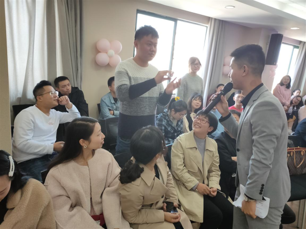 本次活動(dòng)由霍山縣團(tuán)縣委、霍山郵政工會(huì)主辦,全縣金融系統(tǒng)單身男女職工參加聯(lián)誼交友。活動(dòng)現(xiàn)場(chǎng),個(gè)人資料的愛(ài)情宣言寫(xiě)得密密麻麻,活動(dòng)現(xiàn)場(chǎng)設(shè)計(jì)了“八仙過(guò)?!薄翱鞓?lè)大腳板”“圈地運(yùn)動(dòng)”“運(yùn)轉(zhuǎn)乾坤”“愛(ài)情圈圈”以及“混合接力賽”等多種互動(dòng)趣味小游戲,使得相親活動(dòng)始終在熱鬧歡快的氣氛中進(jìn)行。 霍山縣團(tuán)縣委書(shū)記表示,通過(guò)本次活動(dòng),為霍山青年搭建展現(xiàn)個(gè)人風(fēng)采、擴(kuò)大交友范圍、拓展生活空間的平臺(tái),幫助解決婚戀交友難題。