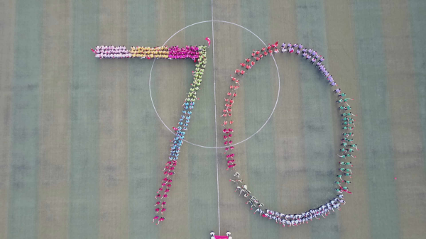 晴空明媚,天空湛藍(lán),在這個(gè)熱情洋溢的日子里,郵儲(chǔ)銀行呼市分行第三屆趣味運(yùn)動(dòng)會(huì)在呼市人民體育場(chǎng)上拉開(kāi)帷幕。開(kāi)幕式上,運(yùn)動(dòng)員們舉著國(guó)旗、行旗高喊著陣陣口號(hào)依次入場(chǎng)。全體員工高唱《我和我的祖國(guó)》,擺出“70”的字樣 ,以此慶祝建國(guó)70周年,祝福我們偉大的祖國(guó)70歲生日快樂(lè)!