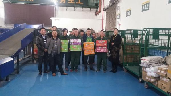 上下齊心,同迎旺季,各基層單位立即行動,落實上級工作部署。 永善縣郵政工會11月14日,永善縣郵政總經(jīng)理周寶,工會主席周顯祥對奮戰(zhàn)一線的分揀封發(fā)、攬投站全體職工進行了慰問,為奮戰(zhàn)在“雙十一”的一線人員送去了牛奶、面包、方便面、礦泉水等一批慰問品。鎮(zhèn)雄縣郵政工會:11月14日,在“雙11”投遞高峰期到來之際,鎮(zhèn)雄縣郵政分公司黨支部書記、總經(jīng)理嚴虹慰問組一行到郵件分揀中心向投遞員、分揀員送去關(guān)愛和溫暖,并為一線工作人員送上慰問品,鼓勵他們,在生產(chǎn)特殊時期,要繼續(xù)發(fā)揚吃苦耐勞的服務(wù)精神,圓滿完成工作任務(wù)......