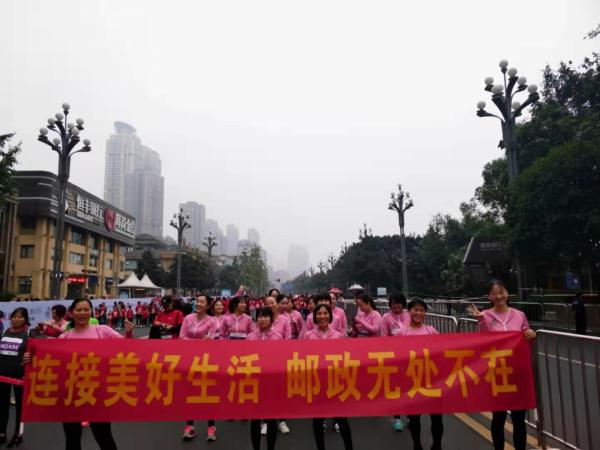 11月10日SHERO2019重慶國際女子半程馬拉松賽于在南濱路成功開跑,中郵重慶市南岸區(qū)分公司組“郵政跑團(tuán)”參加,通過跑步來展現(xiàn)郵政女職工的青春與活力。