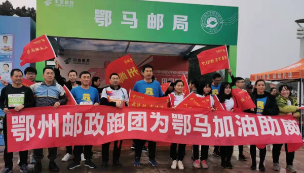 12月1日上午8時(shí),由鄂州市人民政府舉辦的2019鄂州國際半程馬拉松賽在鄂州鳳凰廣場(chǎng)鳴槍開跑;來自世界各地6000多名選手參加了比賽。比賽設(shè)置項(xiàng)目有半程馬拉松(21.0975公里)、微型馬拉松(10公里)、迷你馬拉松(5公里)。市分公司組織60余人參加了本次馬拉松比賽,并在賽場(chǎng)設(shè)立鄂馬郵局,宣傳鄂州、宣傳郵政業(yè)務(wù),展示郵政風(fēng)采。盡管天氣寒冷,鄂州郵政跑團(tuán)隊(duì)員的熱情不減,個(gè)個(gè)精神抖擻,活力滿滿。