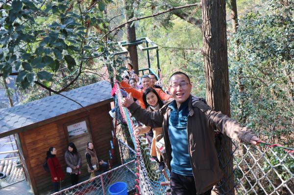 在溫暖的陽光下,大家勇敢地參加了叢林穿越,穿梭在橋梁、網(wǎng)繩、人行道等障礙物中,通過攀援、跨越等方式,在樹林里從一棵樹運動到另一棵樹。在擁抱綠色的同時,也考驗了毅力與膽識。大家一路向前,終于登上“南昌之巔”,放眼望去,一片大好的風光盡收眼底,多彩的秋色已漸漸消退,素顏的初冬款款走來。