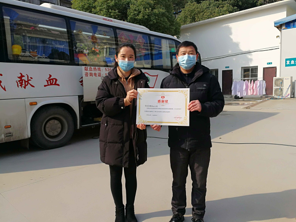 3月5日,安慶市中心血站副站長為安慶市分公司送來感謝狀。